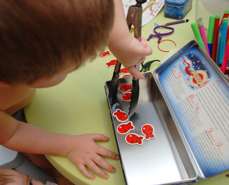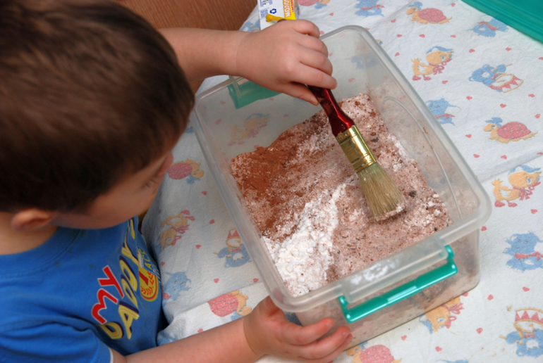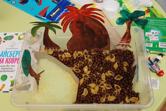 Миша был ооооочень доволен!Сенсорная коробочка не особо удачная, мы с Мишей не знали как с ней играть. С песочком намного интереснее.