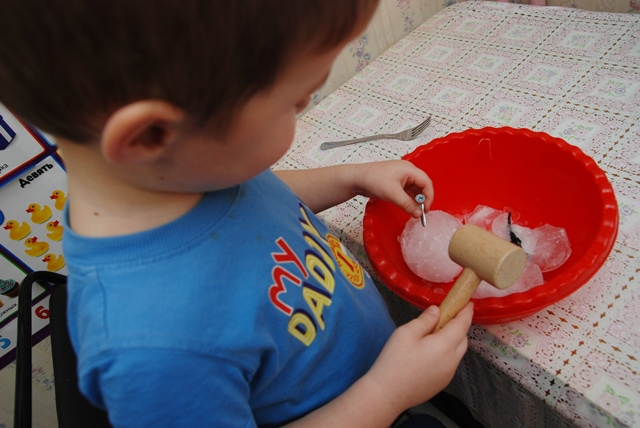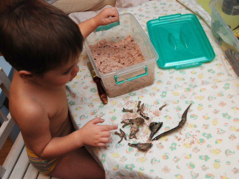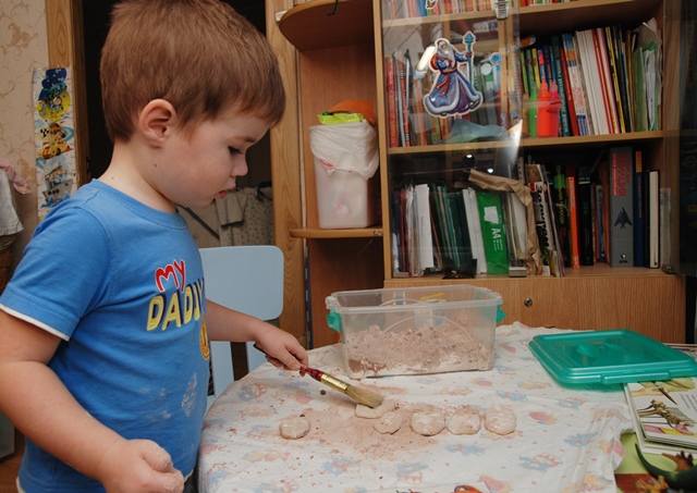 Яйца динозавров. Мише очень понравилось. Пробовали с помощью винта раскалывать, но неудобно, в другой раз пробовли с помощью отвертки, значительно лучше. Потом призвали на помощь воду.