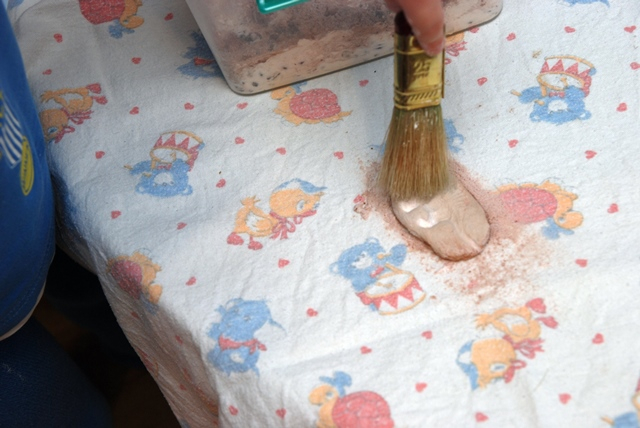 Я делала отпечатки из застывающей глины для раскрашивания. Вполне подойдет соленое тесто. Можно даже с ребенком сделать. В коробочке мука+какао+зерна кофе.