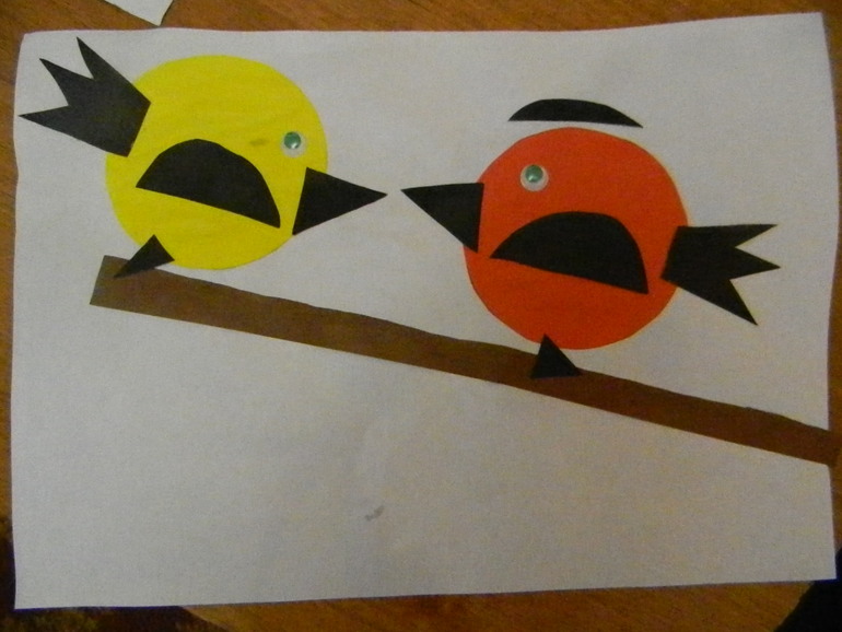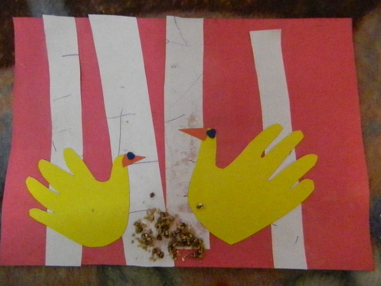 Делали аппликацию "Синица и снегирь"