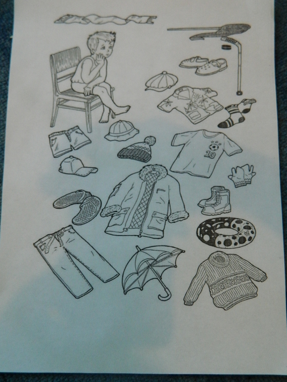 Подбирали мальчику одежду. Ванечка справился отлично, только помимо прочего, еще решил, что мальчику понадобится зонтик и кепка))))