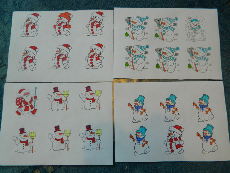 С карточками с этими же снеговиками играли в мемори, но пока идет не очень. Неинтересно.
