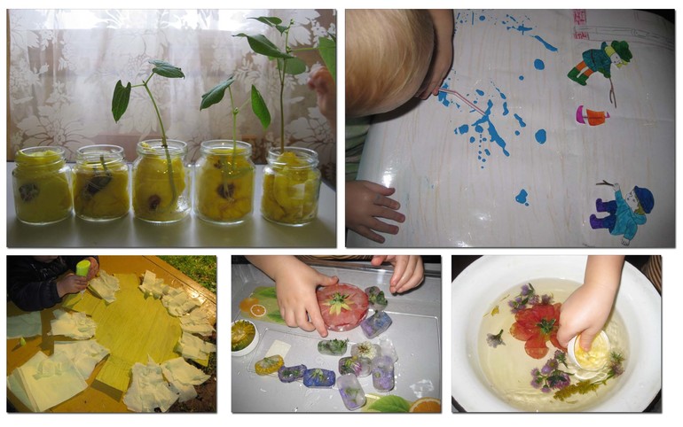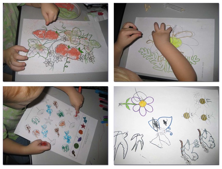 Летний дождик из пипетки (ну это надолго, особенно понравилось «лужи» накрывать салфеткой для впитывания излишек масла, и капать на нее, и рисовать на ней и т.д.)