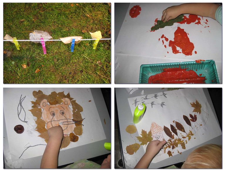 Сушим листики. Отпечатки листочков. Аппликации из природного материала.