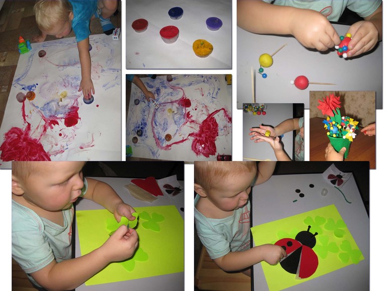 Цветочки из пластилина и кнопок. Совместная аппликация «Божья коровка».