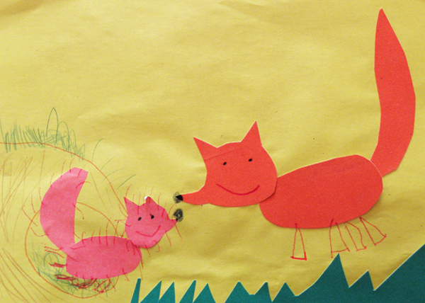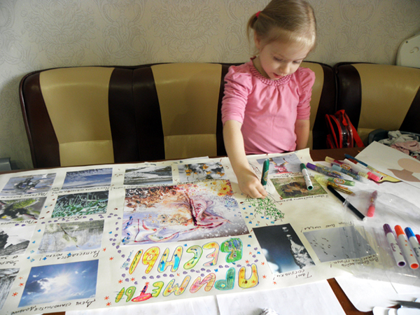 Я помогаю с вырезанием фигур, Соня сама клеит и дорисовывает фломастером детали. И вот они наши любимые герои: