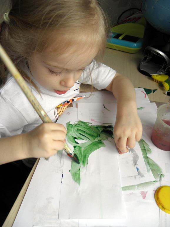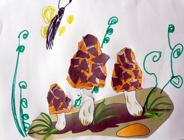 Снег тает, появляется первая травка (рисовала зубной щеткой и скомканной бумагой):