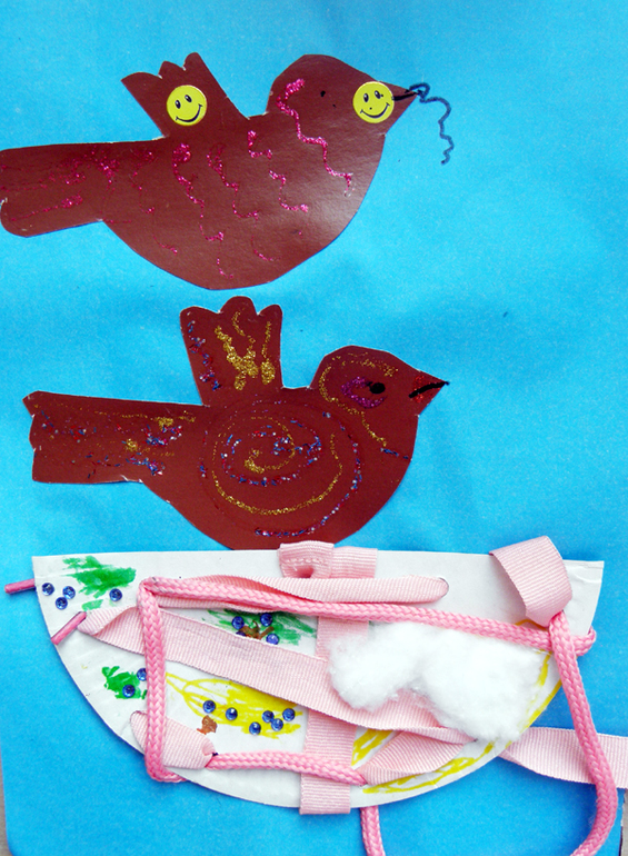 И вот так обыгрывали в творчестве приметы весны, может кому пригодятся наши идеи, например в качестве открыток на 8 марта!Прилетают перелетные птички и начинают вить гнезда: