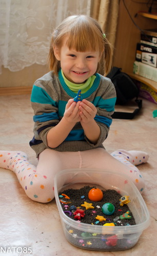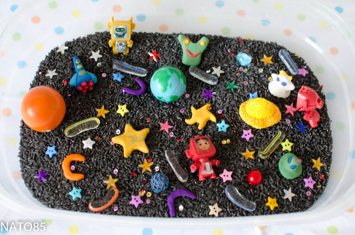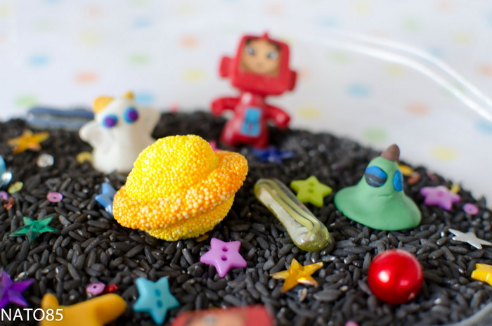 Слепила несколько инопланетян из полимерной глины и ракету для запуска, Сатурн из шарикового пластилина, пуговки, стекляшки в виде комет и схематично еще некоторые планеты - думала Лиза не признает их, ан нет!