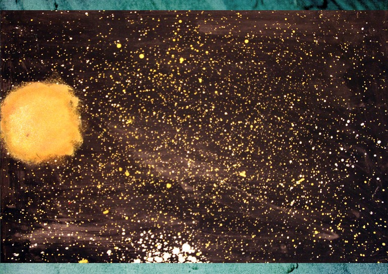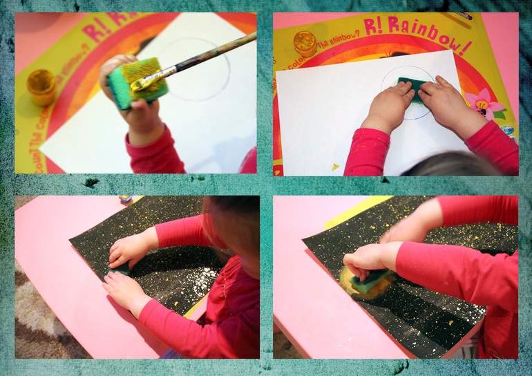 Потом предложила Мире добавить нарисовать солнце. Потренировались на листочке и вот что вышло. Параллельно еще раз напомнила, что Солнце намного больше нашей планеты, но она решила оставить его таким.