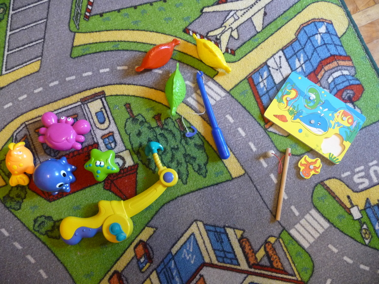 Потом Ромка убежал смотреть мультик "Осьминожки", а мы с Алисой "порыбачили".