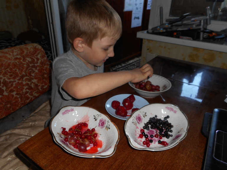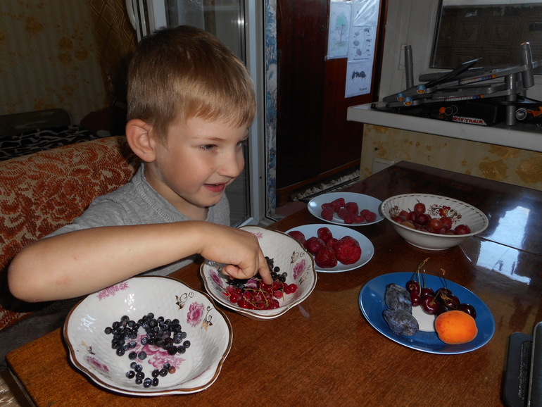 Занятие было фруктово-ягодное, но с большим акцентом именно на ягоды. Т.к. фрукты он знал хорошо, а вот ягоды плохо.