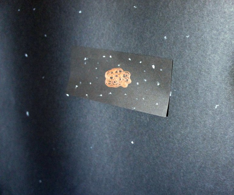 Через довольно продолжительное время, за которое космонавт Кира успела даже поесть и попить, радар подал звуковой сигнал, означающий, что вылет из нашей галактики произошел! Кира поспешила скорее к телескопу, чтобы увидеть наконец нашу галактику со стороны и запечатлеть её на фото :)