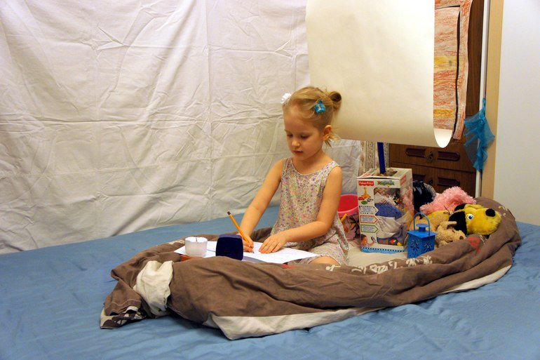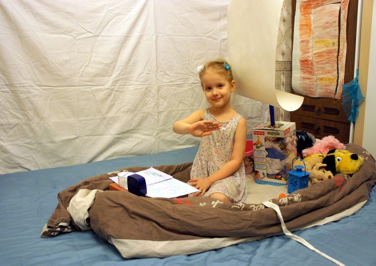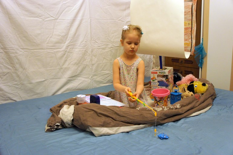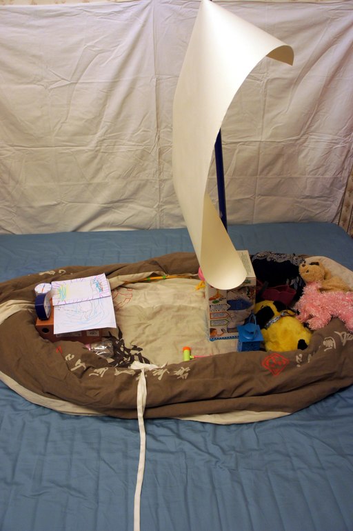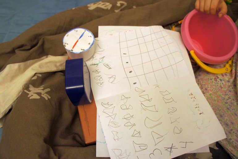 На борту уже всё погружено: ездовые собаки, провизия, фонарь, спальник, ведро, удочка, молоток, компас, часы, карта и судовой журнал :)