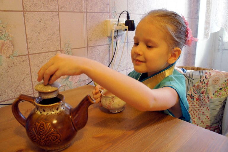 Дети наконец (впервые в жизни :)) увидели как завариваются листики чая в чайничке! :))