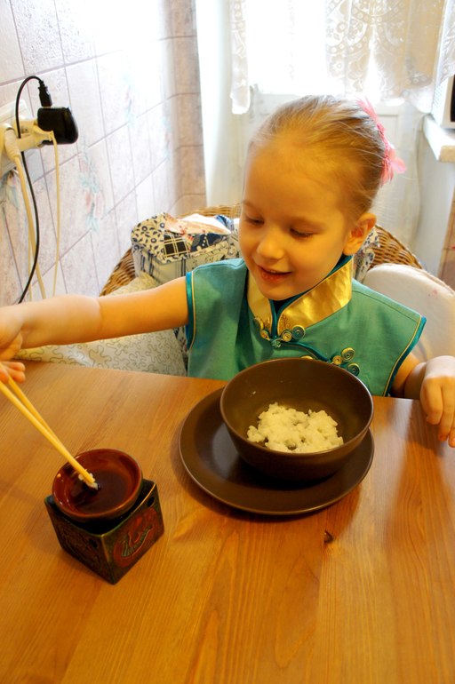 И Кира-сан кстати прям научилась! Счастью не было предела! А рис, скушанный палочками, да ещё и с соевым соусом - это для детей оказывается просто объедение! :)) Мартиника тоже была в восторге, просила ещё и ещё :)