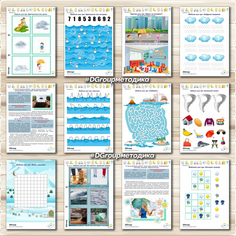 - звуковые файлы с тематическими звуками и шумами.Комплект доступен на русском и украинском языке.К комплекту можно отдельно приобрести блок заданий по тематике «Подготовка к школе «Что такое погода» для детей 5-6 лет.