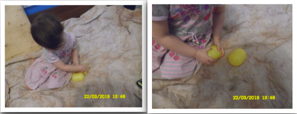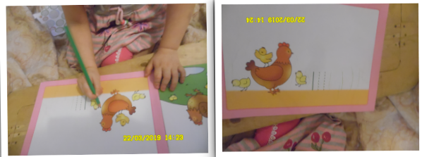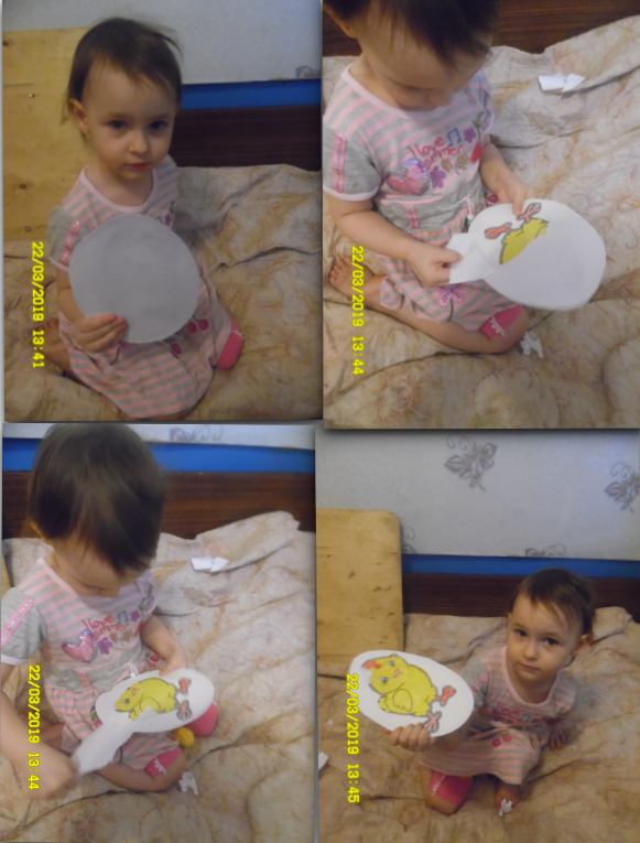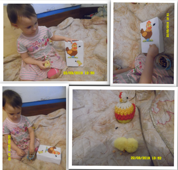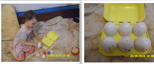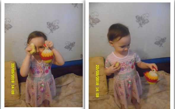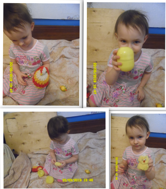 Цыпленок решил с нами поиграть. Искали, в каком яйце он спрятался. Нашла у себя только 2 больших яйца, а так хотела использовать 3. Алине понравилось, с удовольствием вскрывала и закрывала яица, правда с небольшой моей помощью.