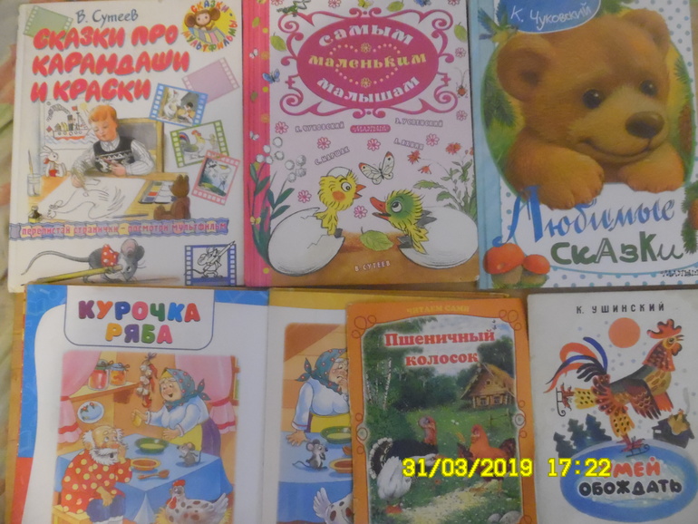 Сказки «Курочка Ряба», «Пшеничный колосок»; К. Ушинский «Умей обождать»; В. Сутеев «Цыпленок и утенок» и «Петух и краски»; К. Чуковский «Цыпленок» и «Путаница»; С. Маршак «Кто колечко найдет?», Л.Яхнин «Таня и солнышко». Розовая книжка самая любимая у Алиши🤗
