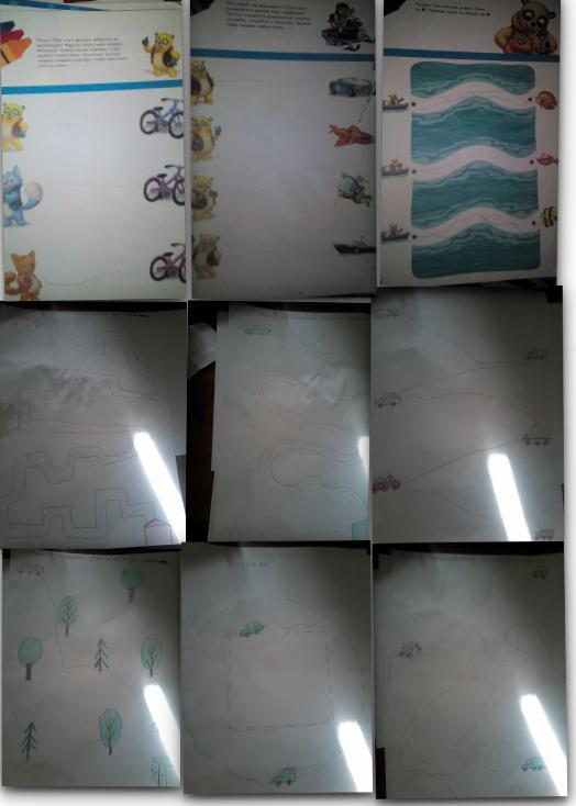 Сюда вошли рукотворные задания (нету принтера к сожалению) и задания от медвежонка Осо из большой книги поделок. Все рукотворные задания срисовала, если получится скину ссылку на распечатку(с интернет ресурсов).