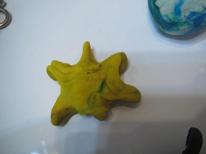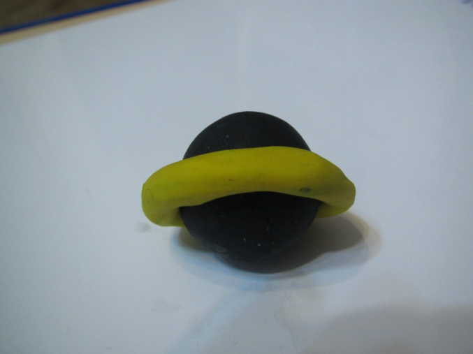 А папа из пластилина быстренько соорудил модель планет и тени: