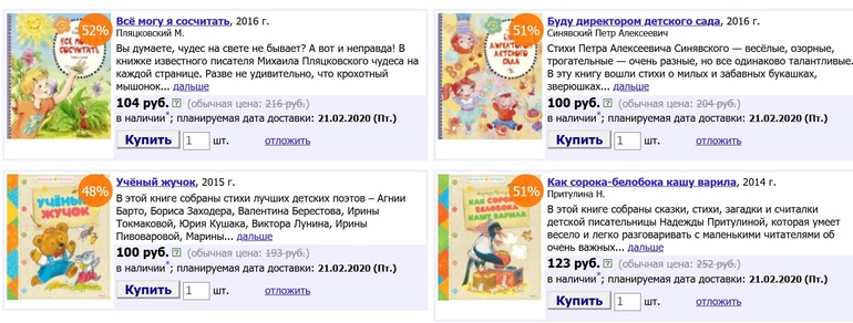 Из интересных акций в Майшопе я отмечу акцию по издательству «Махаон». Скидки на книги из данной подборки превышают 50% (а еще действует промокод СЕМЬ и накопительные скидки).