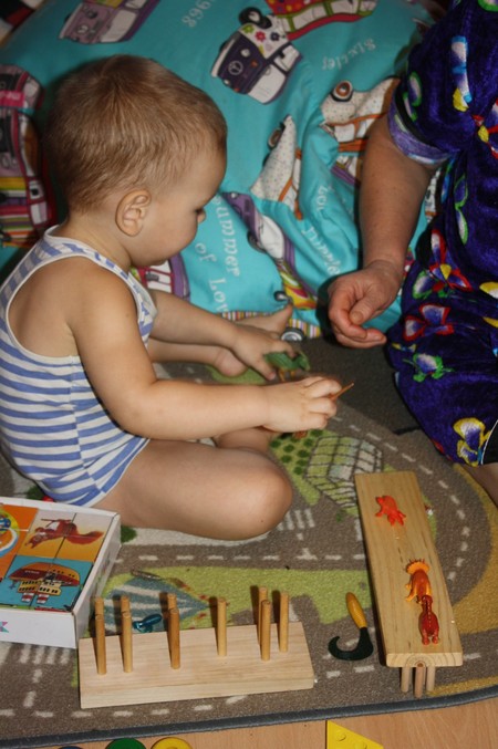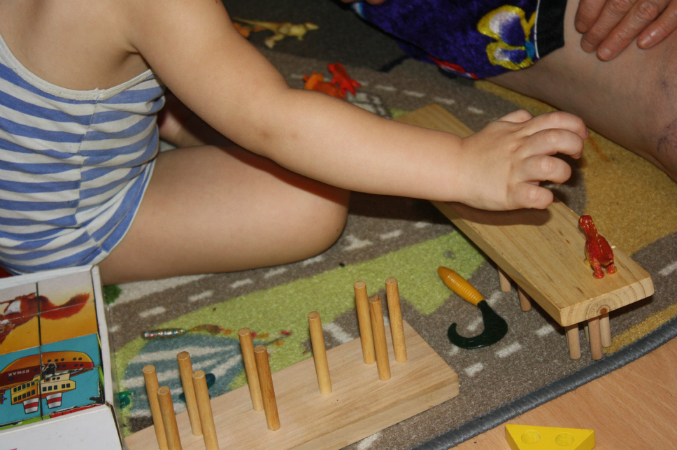 Вон, видите? Надо было геометрические фигурки называть и ставить на место, а для Димы: "Найди, чья это часть тела!"