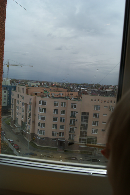 разукрашивали воздушный шар, но наш друг-кран в окне был интереснее и мы разукрасили окно)))
