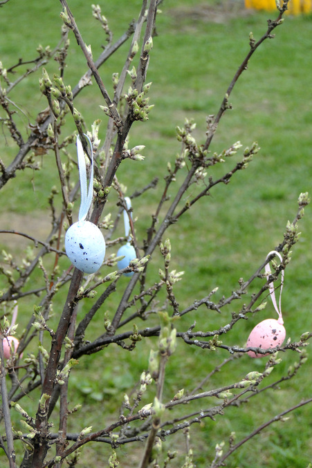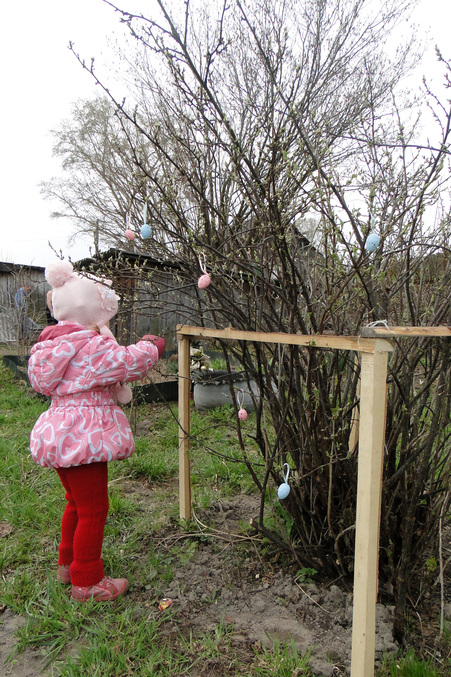 Наряжали пасхальный кустик)