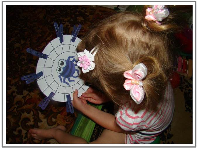 3) Сделала для Даши паутинку, на которую надевали прищепки: