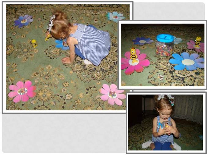 2) Игры по пчелкам. Сделала для дочки цветочки, в серединку положила – нектар (крашенные макароны) и Даша была пчелкой , собирала нектар, складывала его в свой горшочек, а помогали ей в этом наши верные друзья – Вилли и Майя: