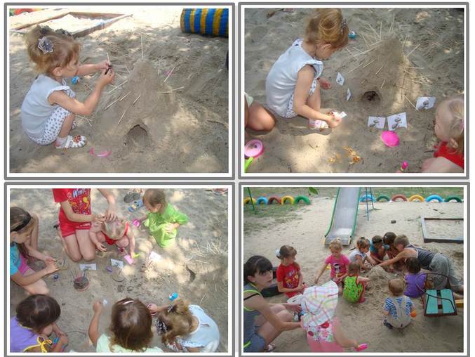 6) Сделали муравейник на улице из песка. Другие детки на площадке тоже увлеклись этим процессом: помогали носить нашему муравьишке палочки и укреплять свой домик, а потом заселили наш муравейник другими муравьями и распределили между ними обязанности: королева, муравьи – войны, рабочие муравьи. И, конечно же, детки готовили для них разные сладости – ведь муравьи их очень любят: