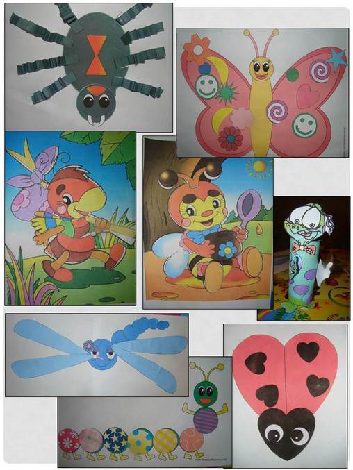 Занятия мы построили так, что каждый день был посвящен одному или нескольким насекомым: пчела, божья коровка, бабочка – гусеница (жизненный цикл), муха, кузнечик, оса, стрекоза, комары, муравьи и другие козявочки- букашечки: червячки и паучки....