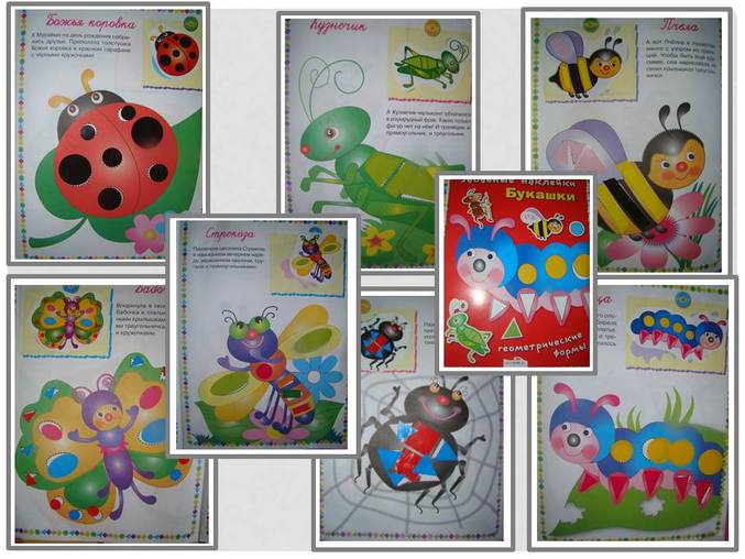 4) Геометрические аппликации с наклейками из книжки «Забавные наклейки. Букашки».