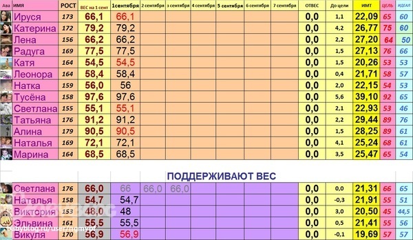 Еще раз напоминаю не забывайте каждый день отчитываться по весу!!!!
