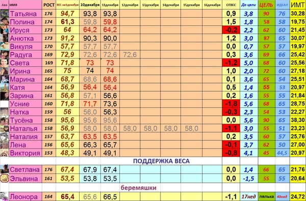 Привет! Извиняюсь за отсутствие, наконец-то выходной))) Вес: 63,4. В нашу комнату (для персонала) поставили холодильник, микроволновку и эл. чайник, теперь ждем когда сделают розетки и всё это заработает. А пока меню далеко не системное, в основном пирожки, булочки и т.п. в теч. дня, в общем то, что можно купить и сразу съесть. Воду стараюсь пить.