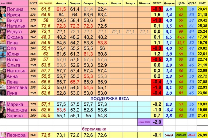 Ежедневные отчетыПриветик всем! как прошли ваши праздники?? надеюсь что все остались ими довольные, сегодня утром встаем на весы и признаемся у кого хороший аппетит и отличные зубки)))