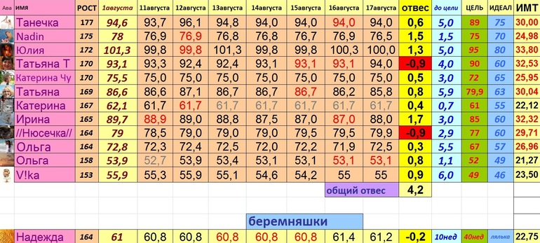 Ну, принимайте в ряды)))мои данные: 162 см, вот вес прям и не понимаю какой писать — с утра была 54,2, сейчас (8 вечера) -55,9!!!и так вес у меня колеблется каждый день, это у всех так? моя цель 50 кг + подкачать попу, убрать бока, просто бокиииищееее)))