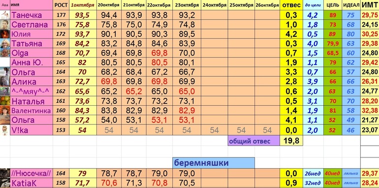 Привет! я 70,2 (-0,3)Завтрак — йогурт, чайОбед — куриная отбивная с греческим салатом без ореховПерекус — два тоста из черного хлеба с красной икройУжин — плов (мясо не ела, можно сказать рис с морковкой), огурецДве мандаринки.Спорт — аквааэробика.Тошнит...