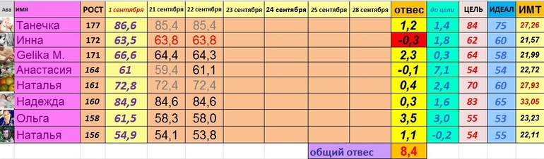 Нюсечка огромное спасибо за мотивашки !!! Они РЕАЛЬНО поднимают настроения! Вес мой 57,3(-700) Вчера тоже сделала разгрузочный день! 1кг яблок,1л кефира и 300гр творога 2л воды и домашняя тренировка