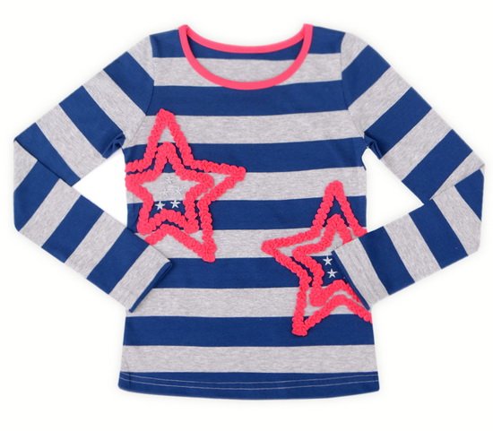 Оригинальный регланчик с огромными звездами яркой расцветки и широкой полосой, составят комплект практически к каждой вещи в гардеробе Вашей юной модницы.