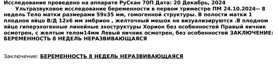 Плодное яйцо ещё немного выросло. Желточный мешок, который был, канул. Никаких предпосылок что выйдет само нет, да и сказали уже нельзя тянуть, нитевые структуры в ПЯ появились, о чем-то это там говорит.