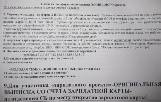 А вам разве не дали список документов для ипотеки. Вот нам вчера дали список: