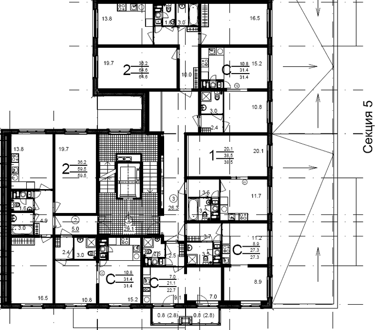 По договору (заключен договор ЖСК) указано, что я приобрела 1 ком. кв-ру площадю 22,7 кв.м. в доме 21, секция 5, этаж 2, на площадке 5ая, тип слева.