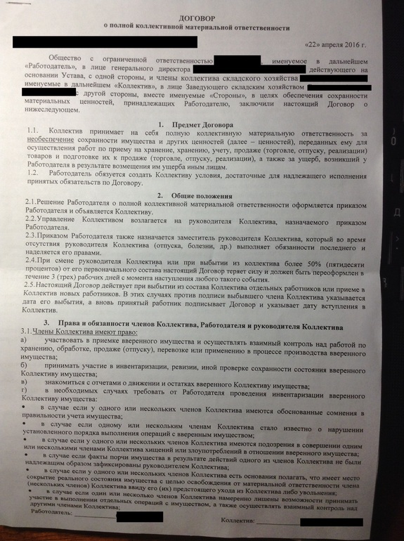 Помогите, на работе ни с того ни с сего придумали договор материальной ответсвенности....