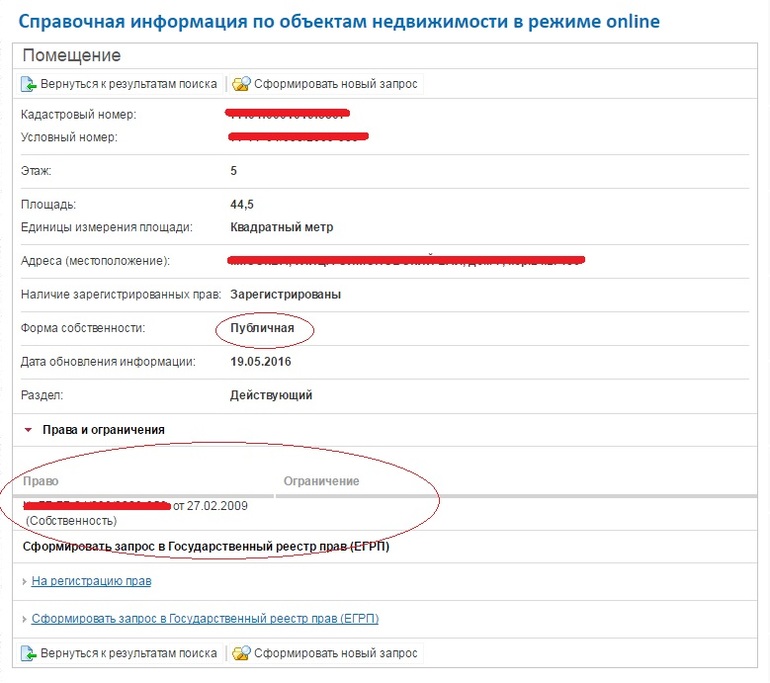 Жилищное (оформление, прописка, приватизация)Добрый день! Подскажите, пожалуста. Есть квартира родственников. Насколько я знаю, она никогда не была приватизирована, они против. А тут зашла на сайт Росреестра, написано, что форма собственности Публичная. Но когда я нажала на ссылку ниже "Права и ограничения", то там вписан номер свидетельства от 2009 года. Так что это значит? Приватизирована квартира или нет? Причем тут этот номер свидетельства о праве собственности, если указано, что форма собственности - публичная (т.е. квартира принадлежит государству, соц.найм).