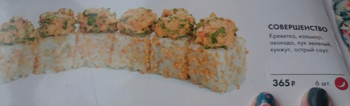 у меня есть фото меню, может,я ,конечно. слепая, но крабовых палочек я не вижу
