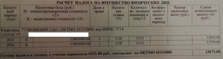 Сегодня пришло письмо с налогом на имущество физ. лиц (Москва), почему-то налоговый период указан 2015-2016 гг, хотя в прошлом году платежка была за 2015 год и была оплачена вовремя.