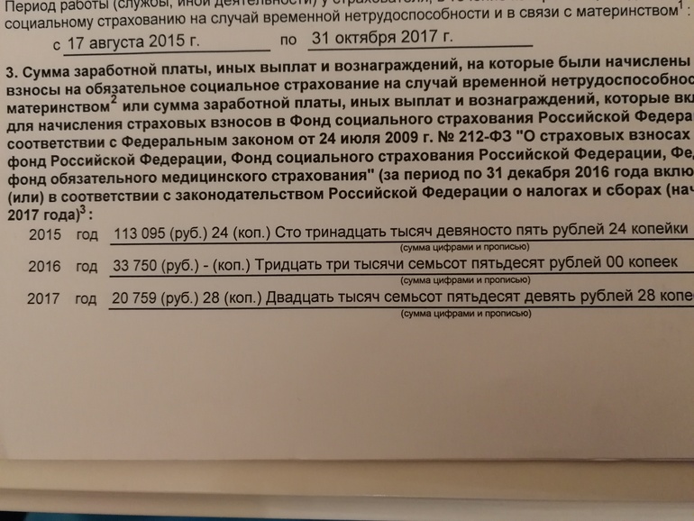 С 10.02.16 была в отпуске по бир с последующим отпуском по уходу за ребёнком до 3х лет, в компании А. Пособия рассчитывались соответственно исходя из доходов за 2014-2015гг. (около 100тыс бир, и примерно 10тыс/мес отпуск по уходу до 1,5лет).