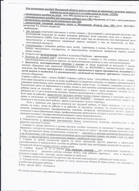 У нас такой список документов был в декабре. Сейчас вроде другая величина прожиточного минимума